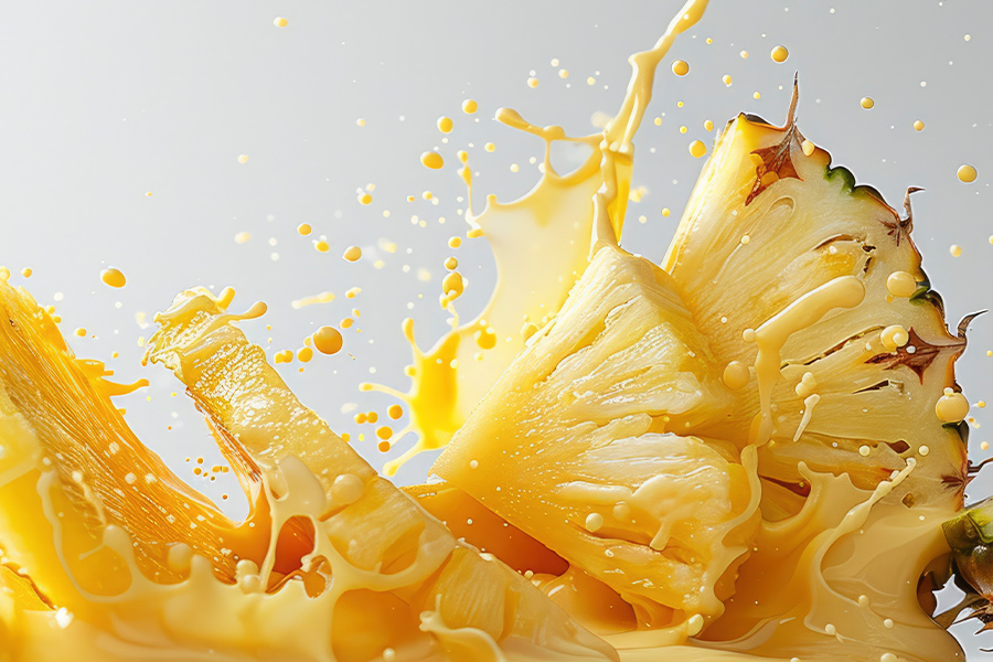鳳梨果汁粉:主要以鳳梨濃縮汁及麥芽糊精為原料,利用噴霧乾燥製成具流動性之淡黃色細緻粉末。適合於食品、飲料及營養補充品等方面之應用。